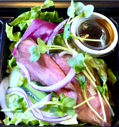 西予市のブランド黒毛和牛「山の響」を使ったサラダです。(ドレッシング付)