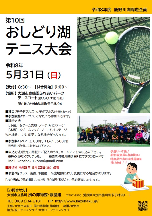 令和8年度 鹿野川湖周遊企画 第10回「おしどり湖テニス大会」のお知らせ