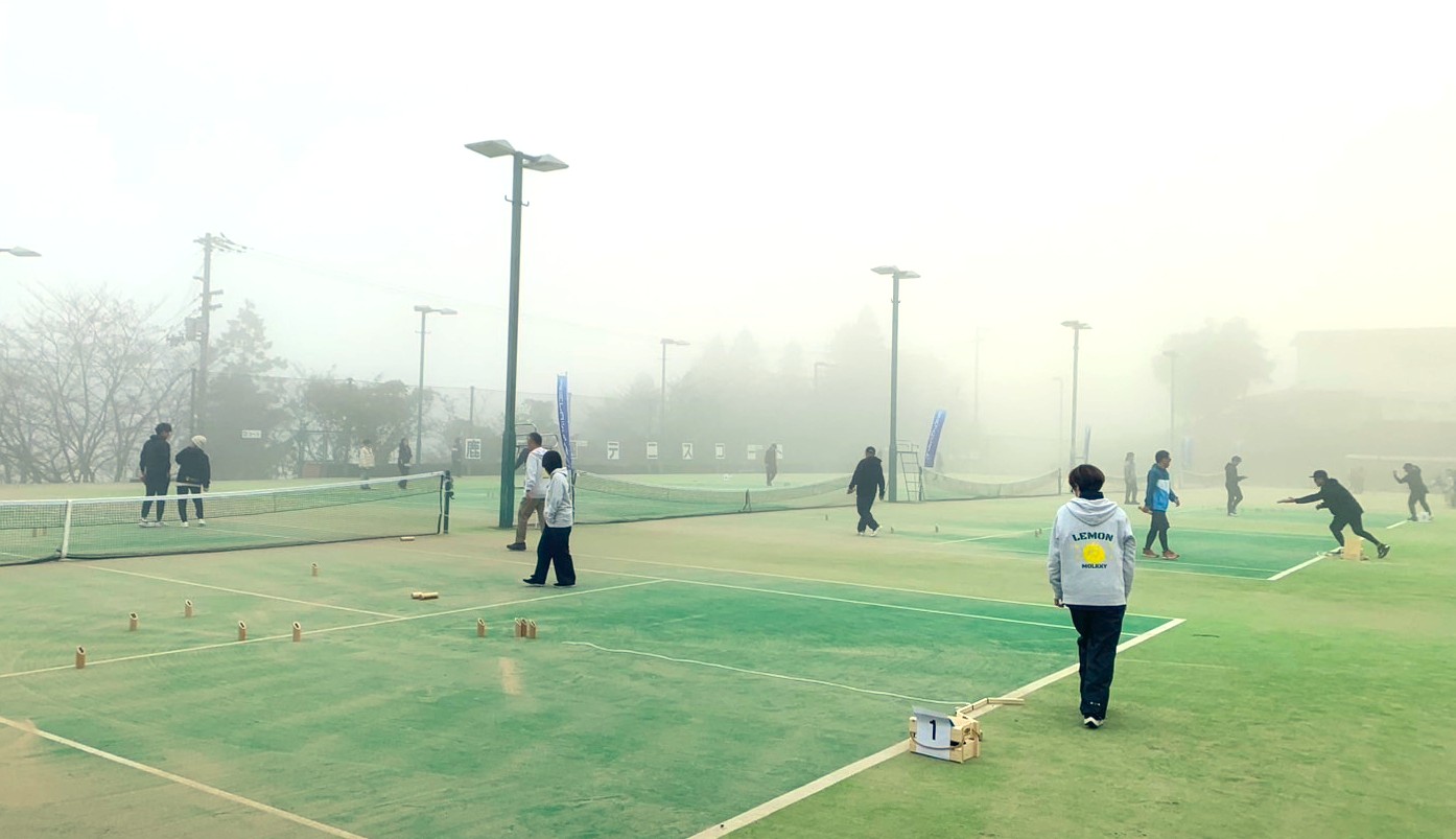今年のテニスコートでは、初の「モルック大会」が開催され、