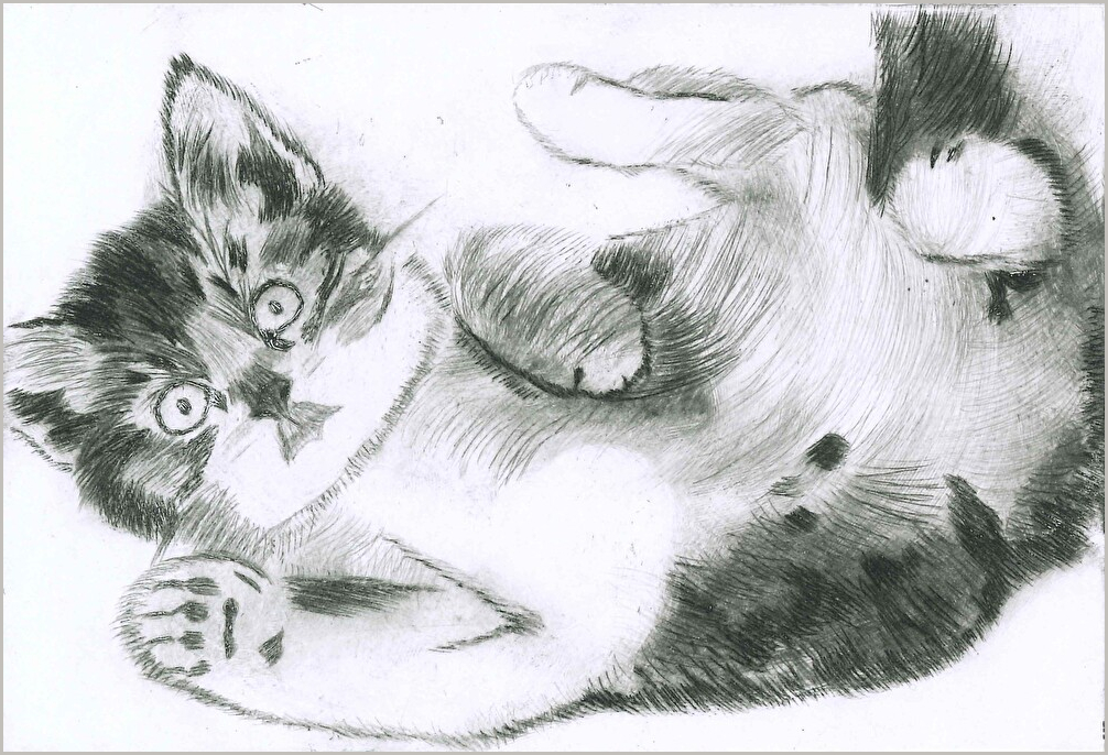 題 / くつろぐ猫 技法 / ドライポイント(凹版)