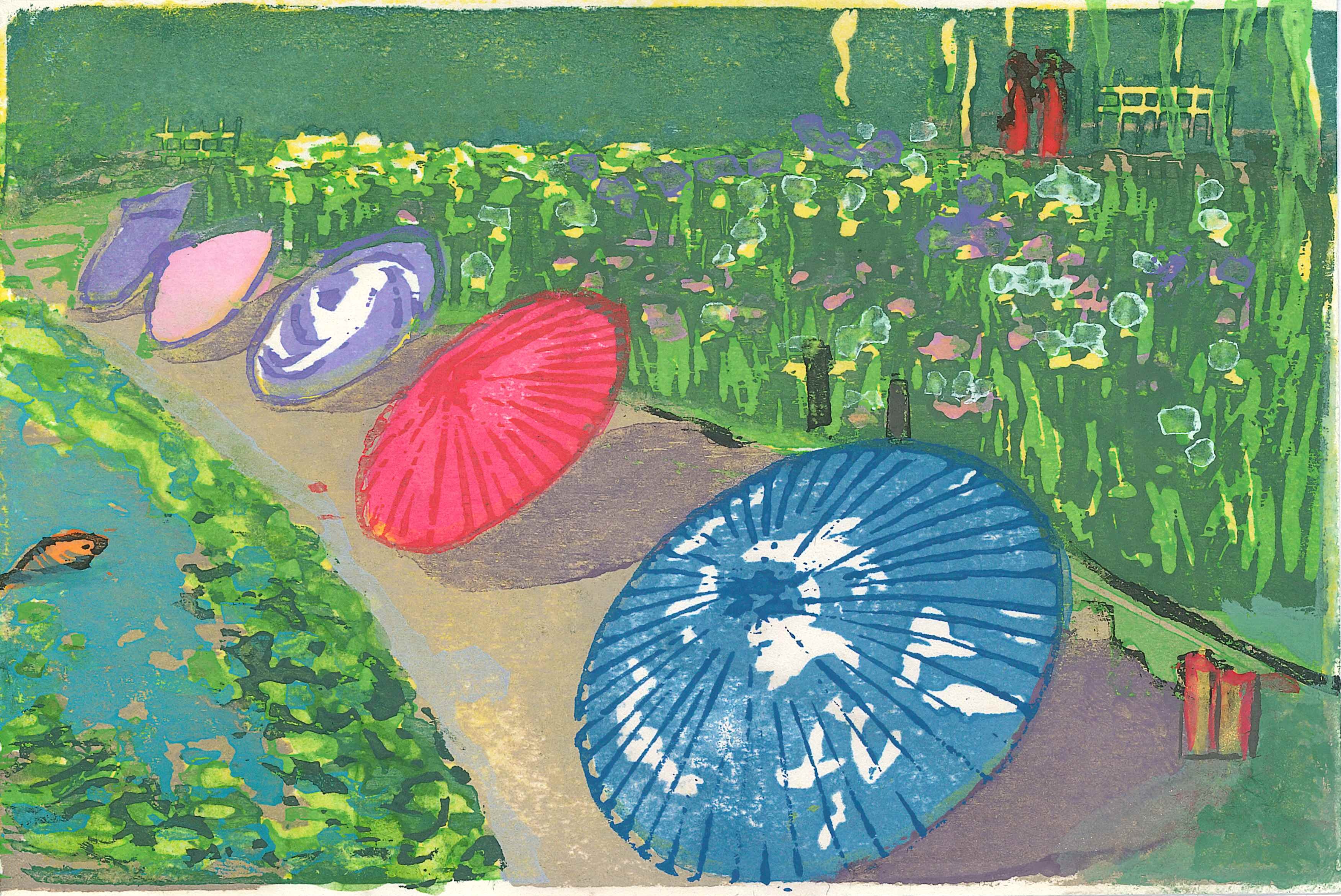 題 / 傘まつり 技法 / 多色木版画(シナベニア)