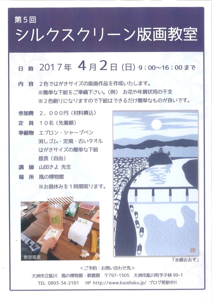 早速ですが、シルクスクリーン教室のご案内です(^^)/