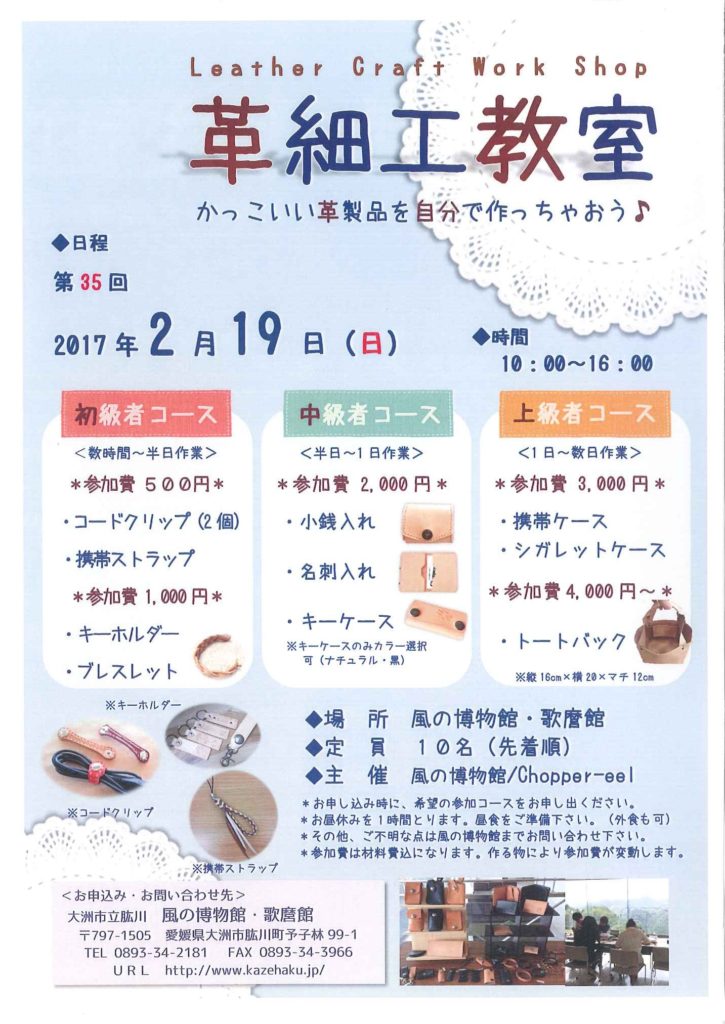 第35回「革細工教室」開催のお知らせ♪