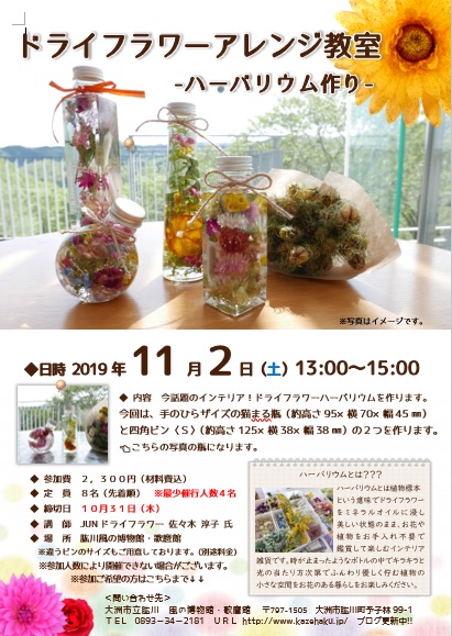 早速ですが、「ドライフラワーアレンジ教室」開催のご案内です!!