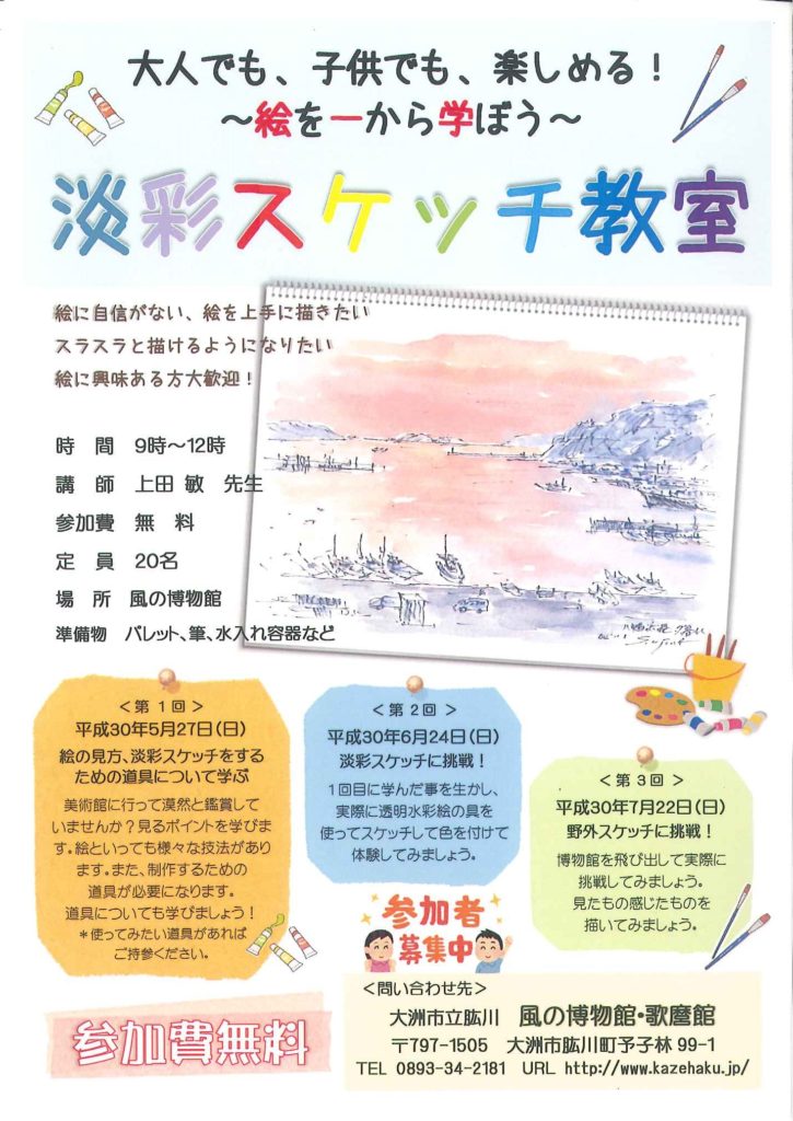 平成30年「淡彩スケッチ教室」開催のお知らせ★【募集】