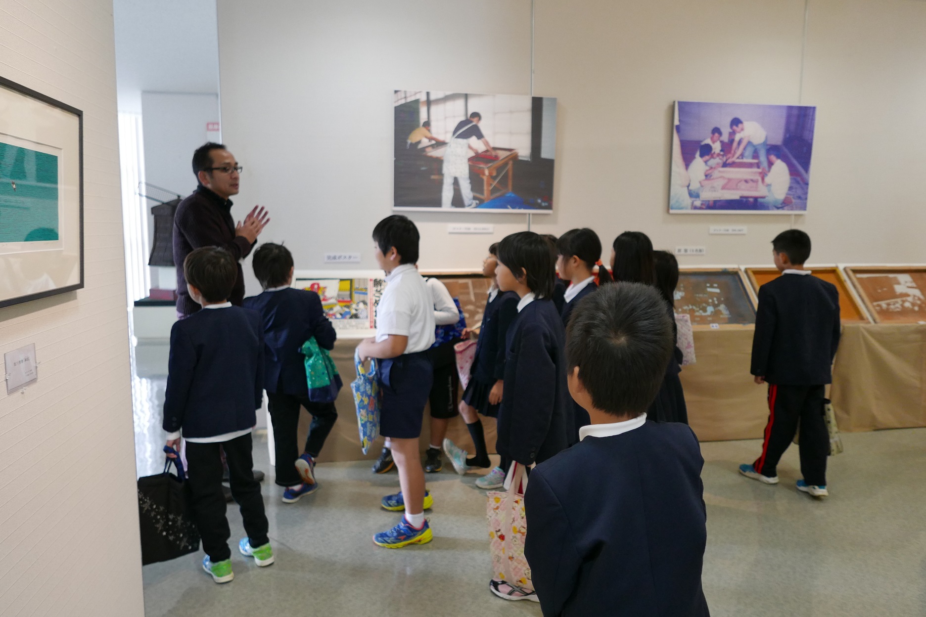総合学習で、館内の見学と木版画の摺り体験をしましたので、