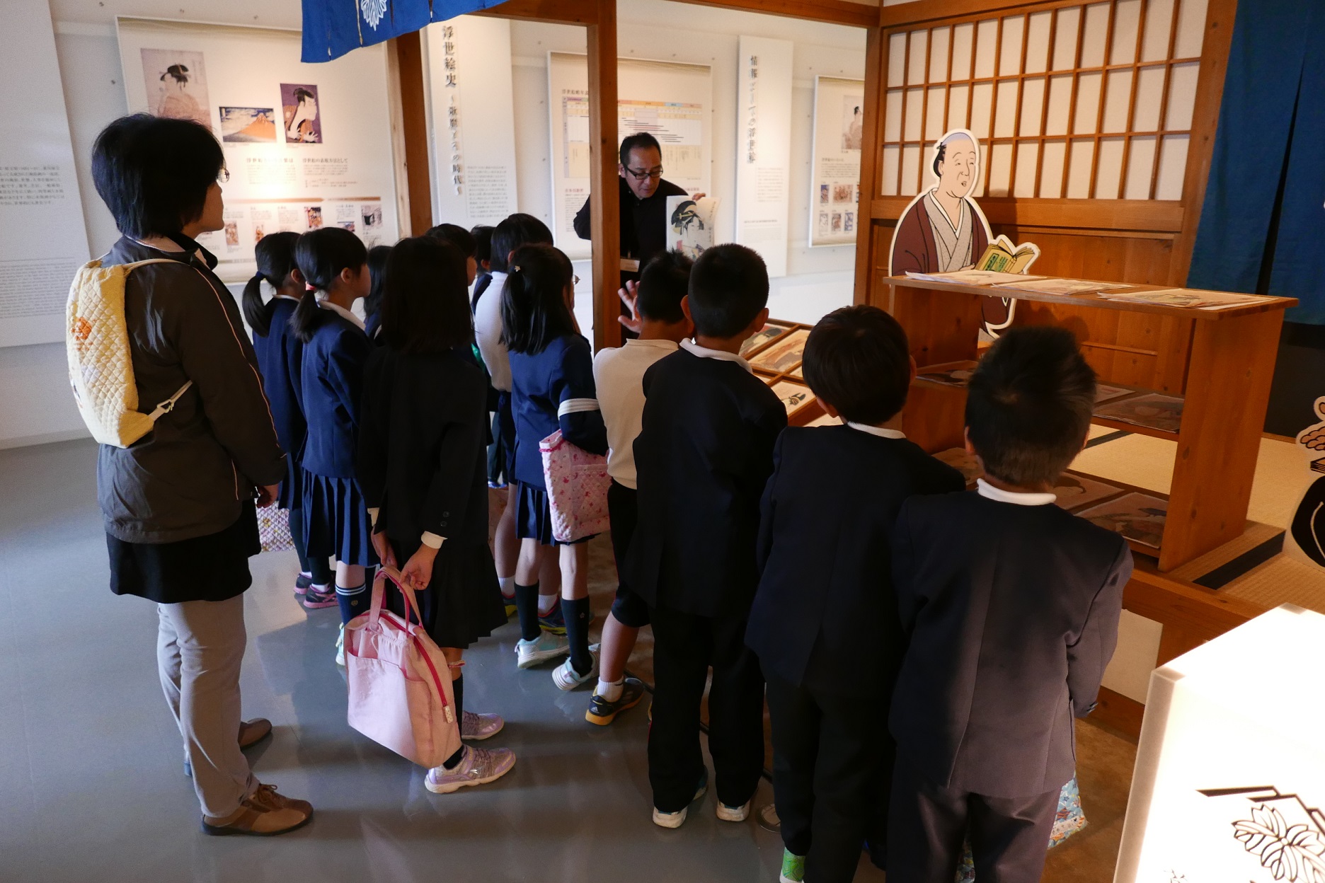 次は、歌麿館へ!!当時、浮世絵が販売されていた様子に興味津々です!