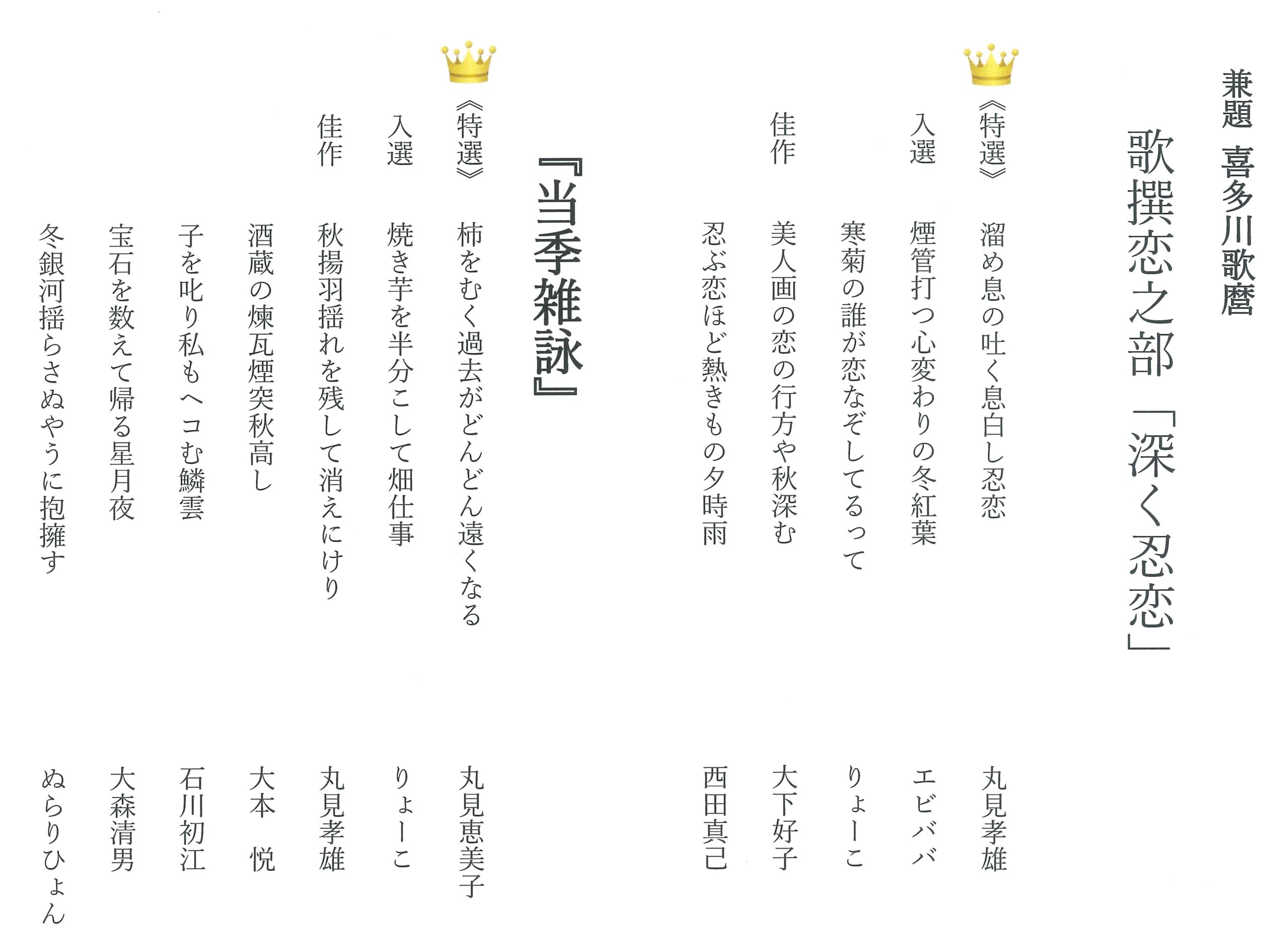 当季雑詠におきまして、投句いただき誠にありがとうございます。