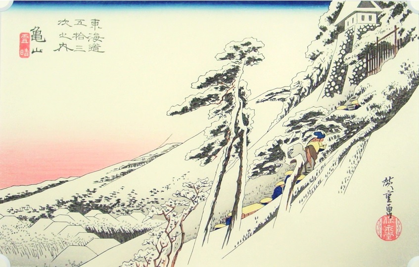 ※題材の、歌川広重 東海道五十三次「亀山」を一句、