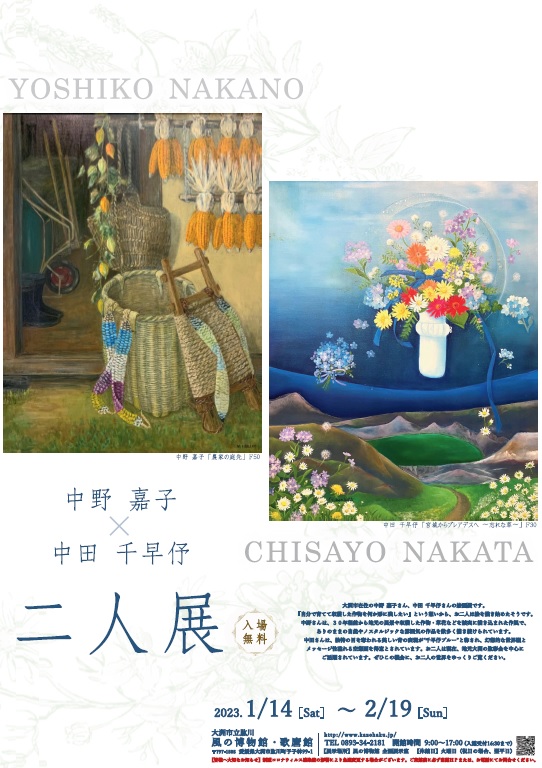 大洲市在住の中野 嘉子さん、中田 千早伃さんの絵画展です。