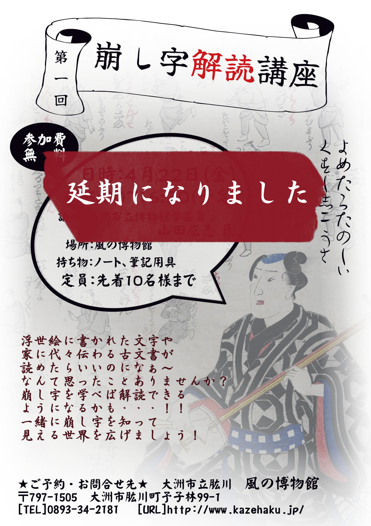 内容:くずし字について楽しく学び、解読にチャレンジ!