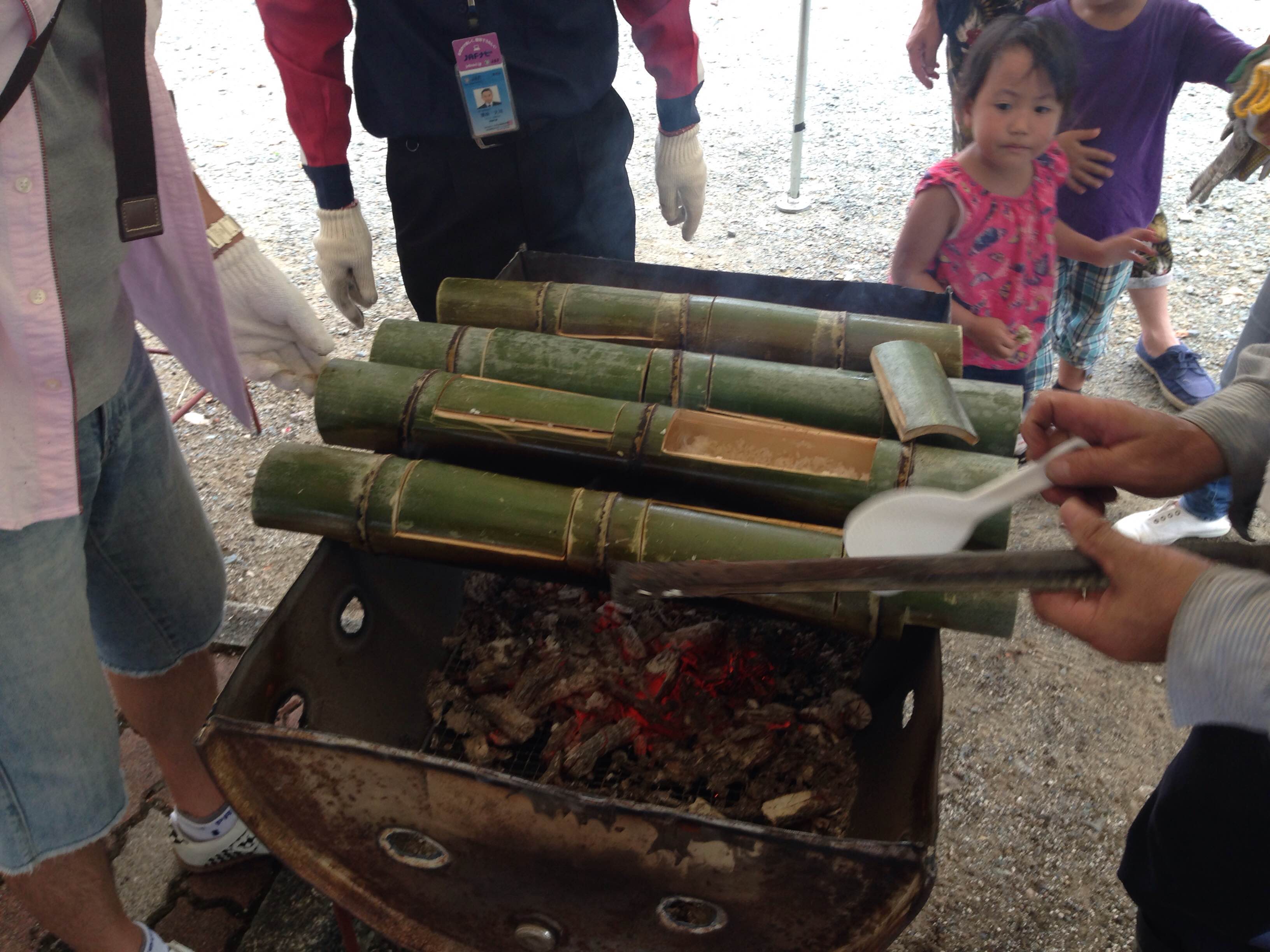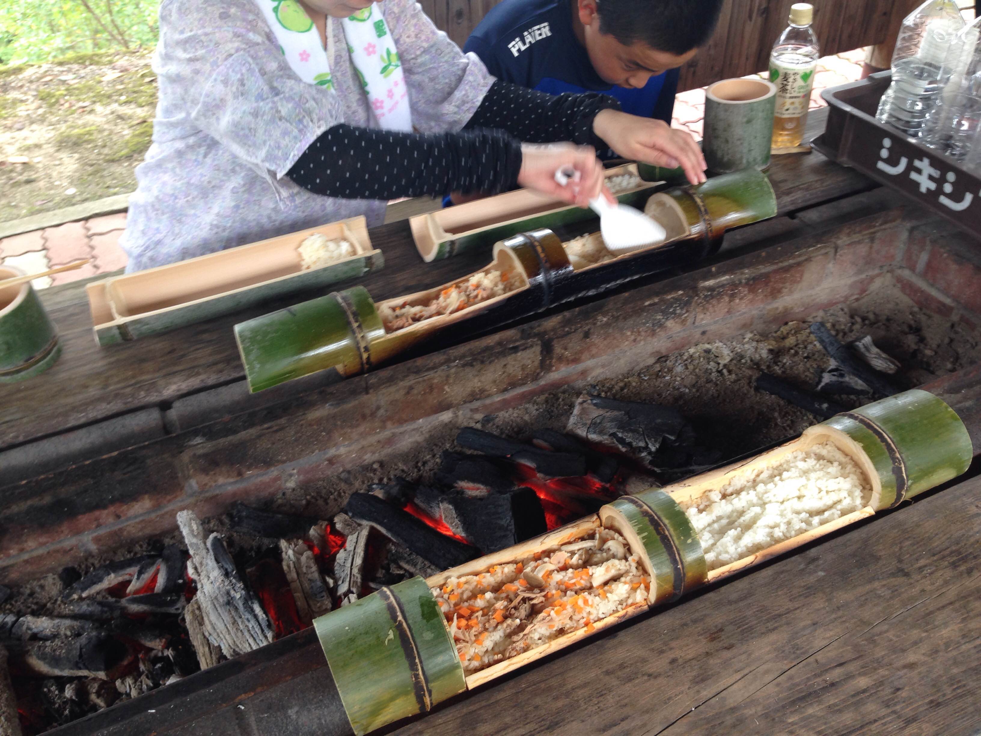 竹の食器作りの後は、竹で炊く『竹ごはん』で