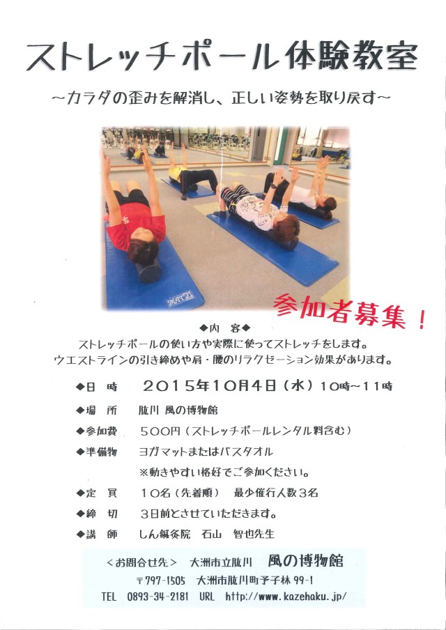 ◆参加費 500円(ストレッチポールレンタル料含む)