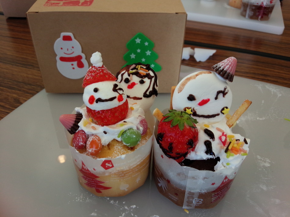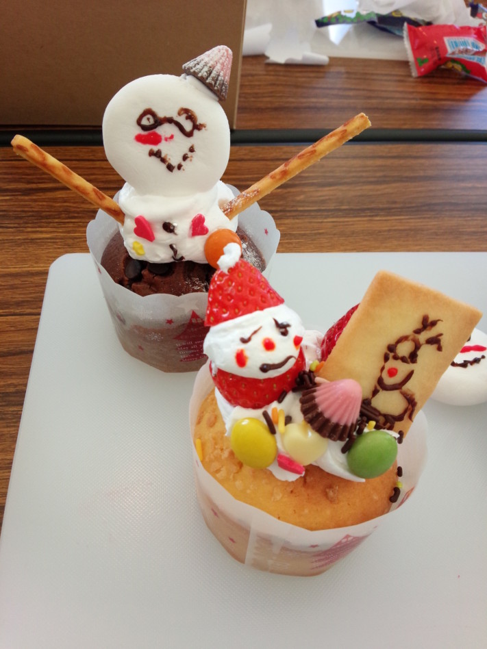 クリスマスがテーマなので、カップケーキの上に