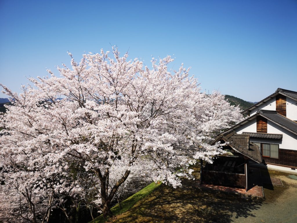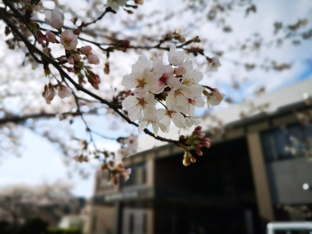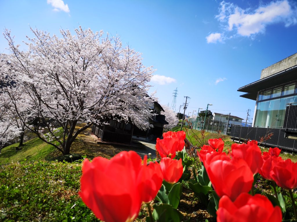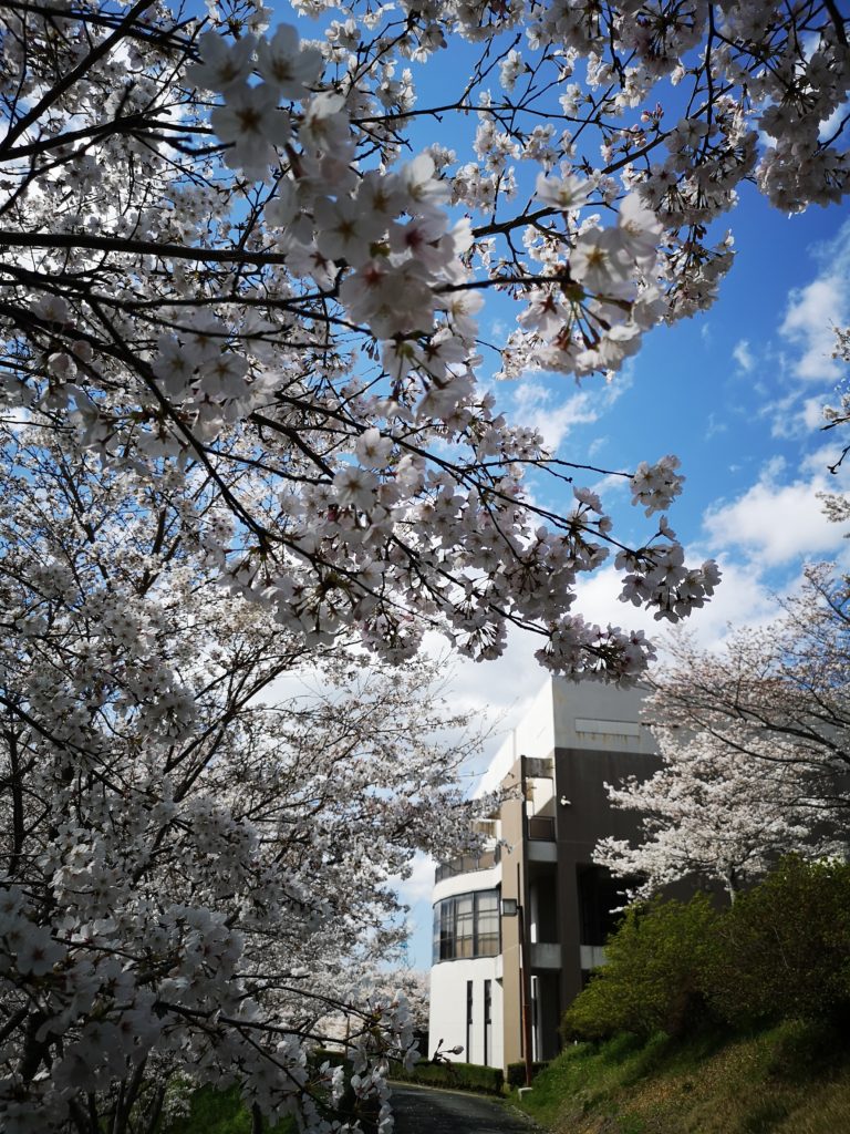 桜が咲いて、風の博物館が雲の上にあるように見えました(^^)