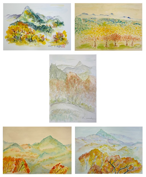 あいにくの雨・・・という事で当館から見える紅葉の景色を描きました!