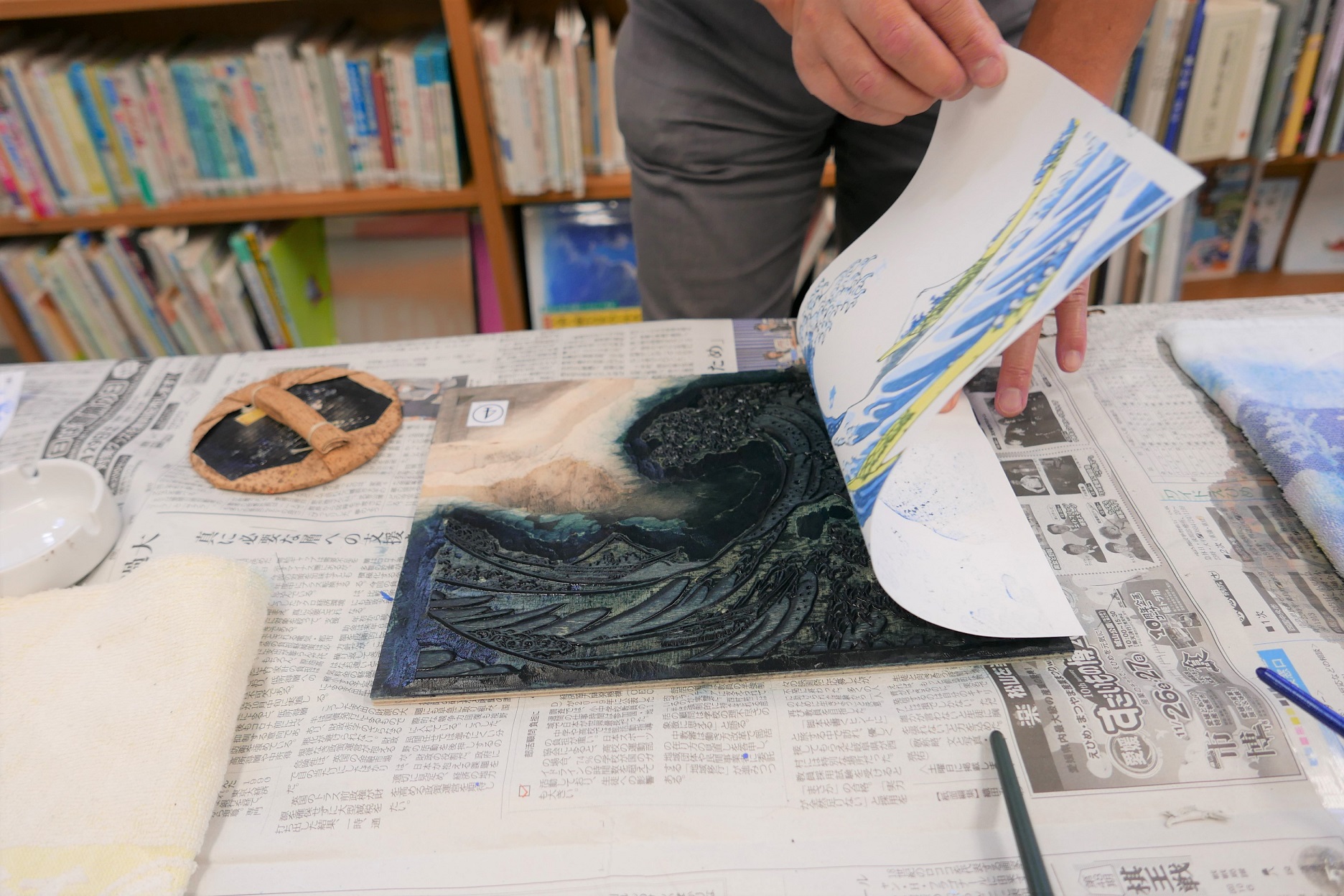 「神奈川沖浪裏」の摺り体験を行います。