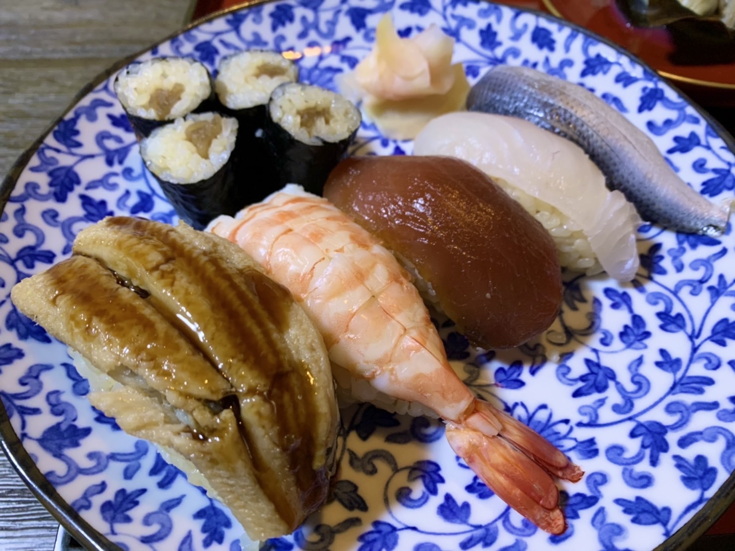 ▪にぎり寿司 (漬けマグロ・煮穴子・海老・コハダ・鯛・かんぴょう細巻き)